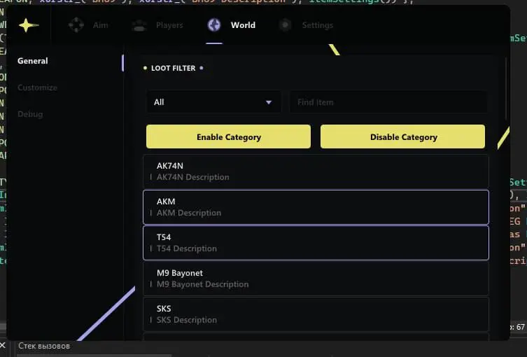 • Custom Filter (Search) - кастомный лут фильтр, поиск предметов по названию