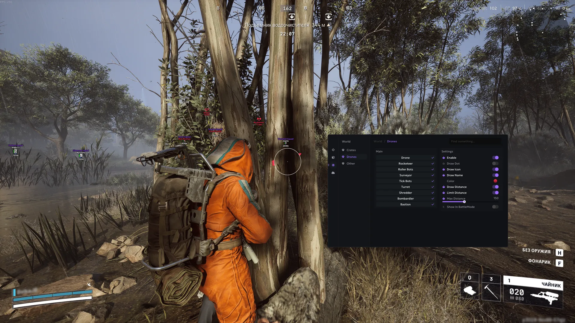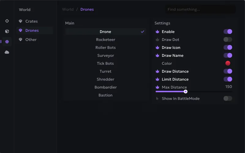 • Enable - включить отображение контейнеров/дронов/другой лут