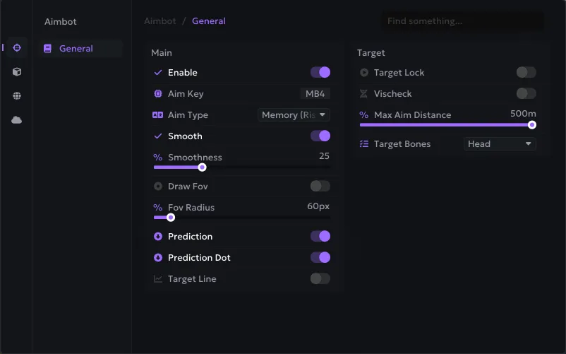 • Max Distance - расстояние работы аимбота