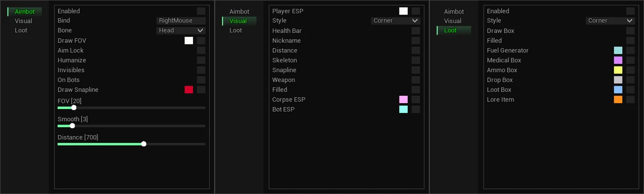 • Loot ESP - включить показ предметов и объектов