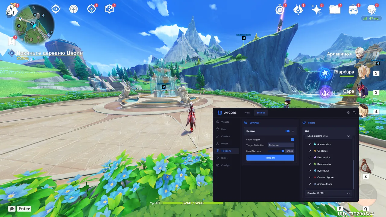 Основные функции Genshin Impact Private Hack