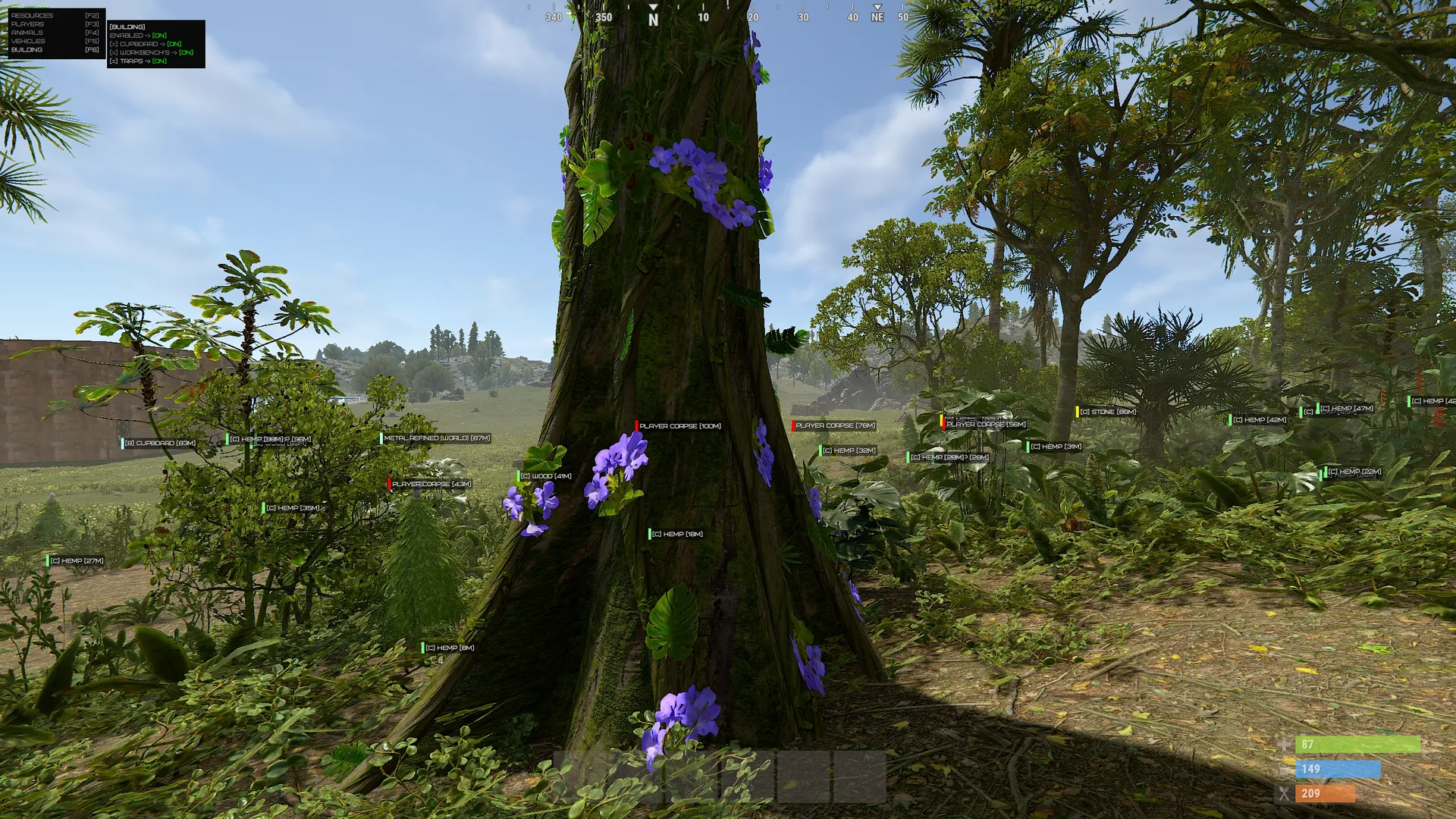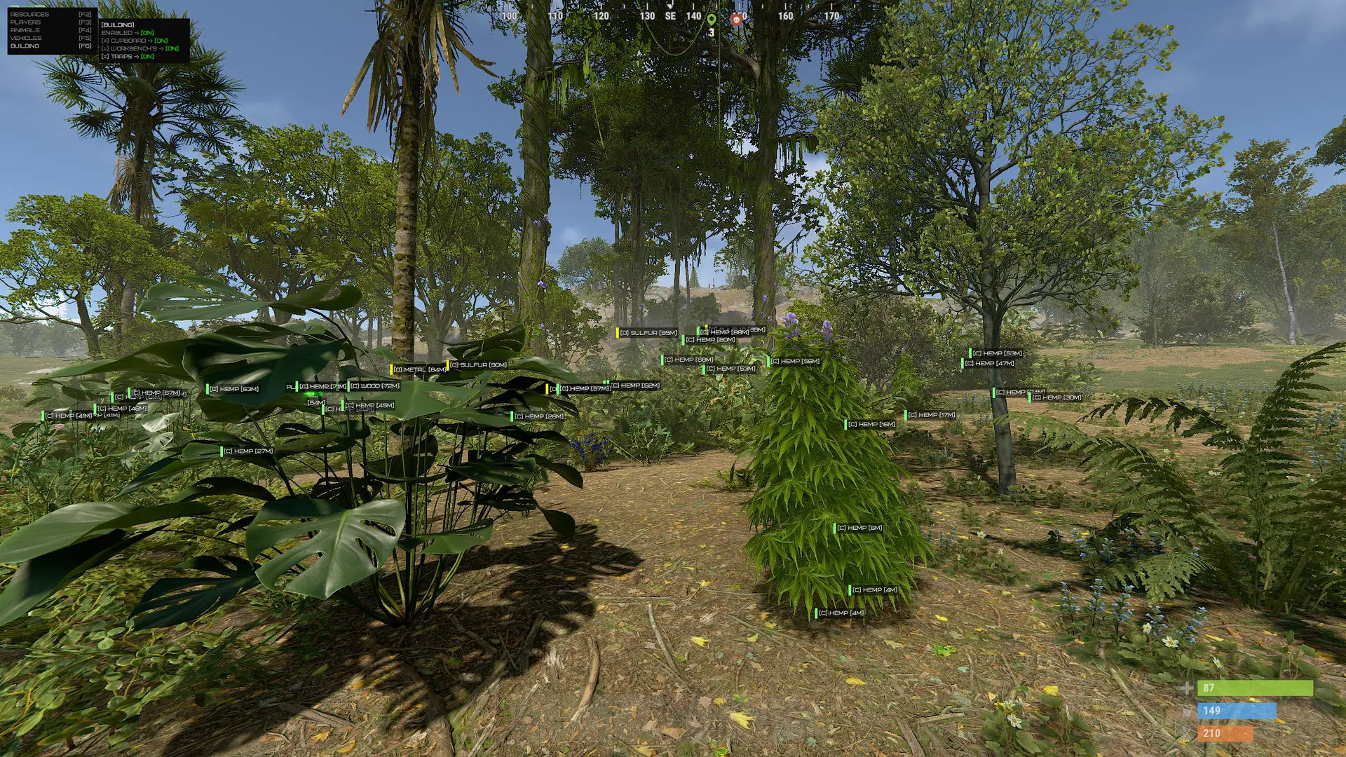 • Collectables - collectible resources from the ground (stone, metal, sulfur, wood, hemp)