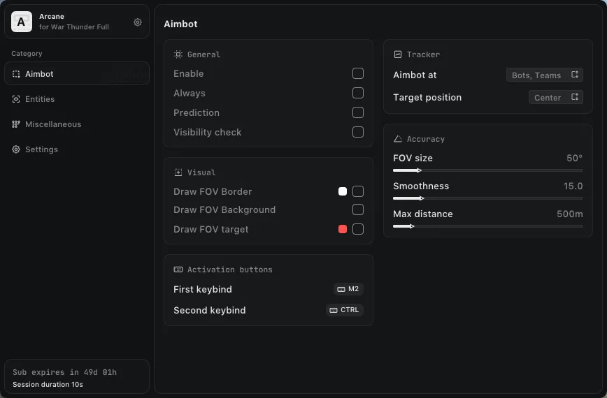 • Aim Target - цели на которые будет работать аим (боты, тиммейты, враги)