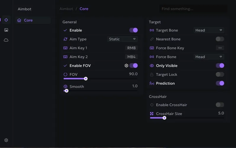 • Target Bone – choose the point where the Aimbot will aim (head, neck, body, pelvis)