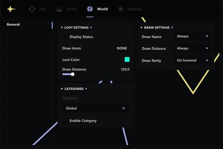 • Separate Settings for Weapon Categories (Global, Melee, Rifle, Shotgun, SMG, Pistol, Sniper, Other)